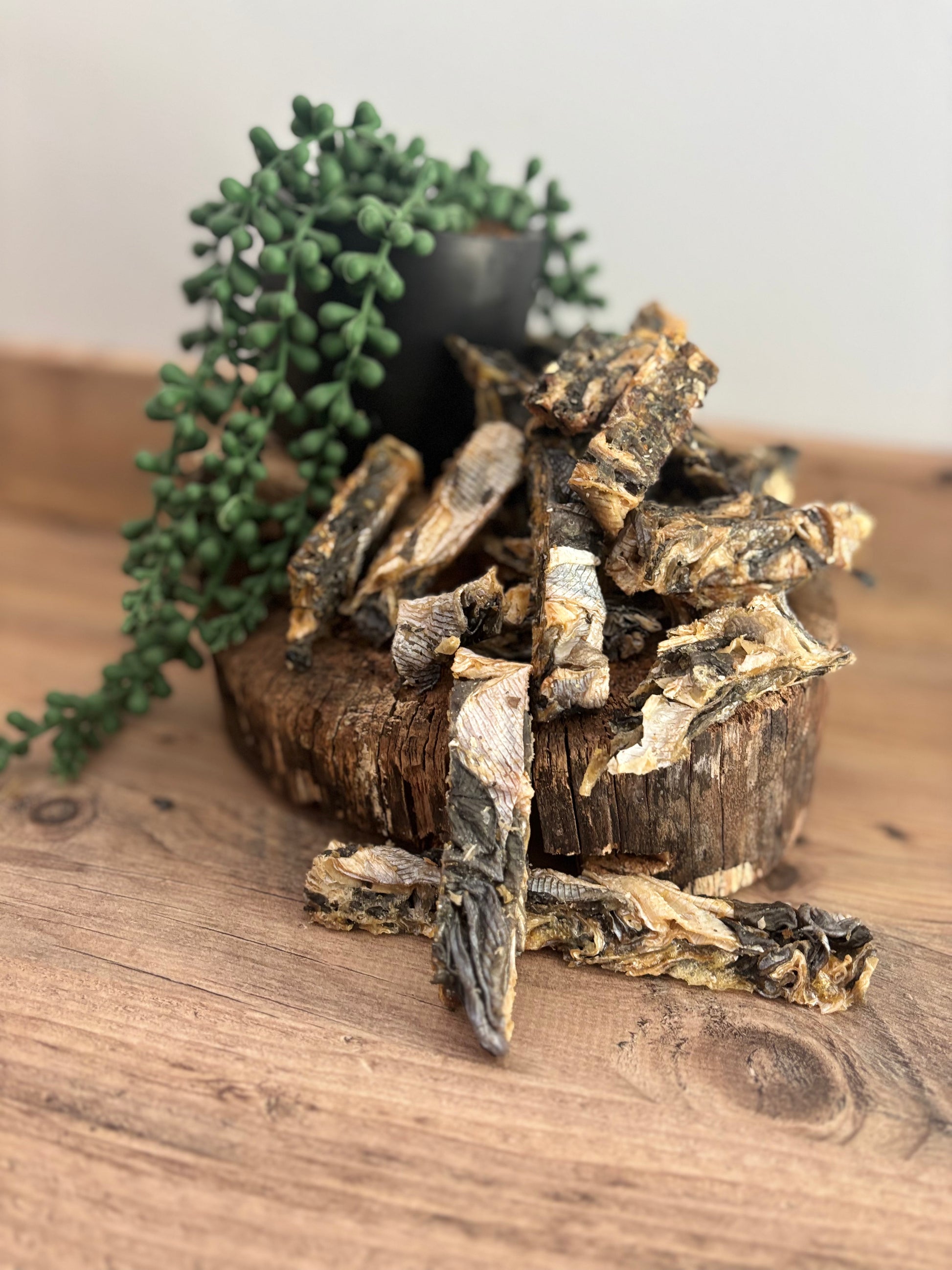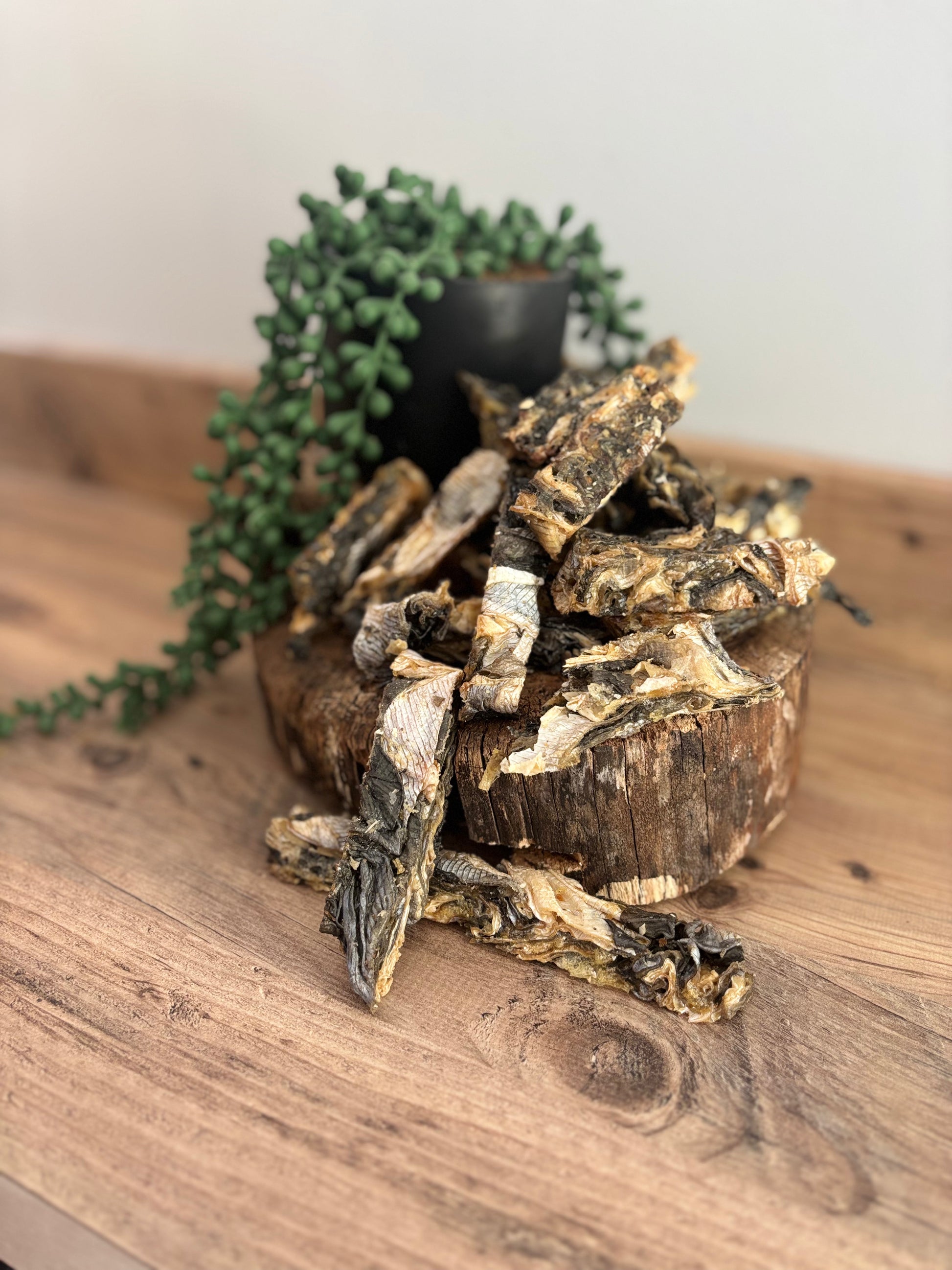 Fish Fingers are made from 100% air-dried whitefish skins. The moisture in the strips is gently extracted in the drying process leaving you with a more nutritionally dense treat.